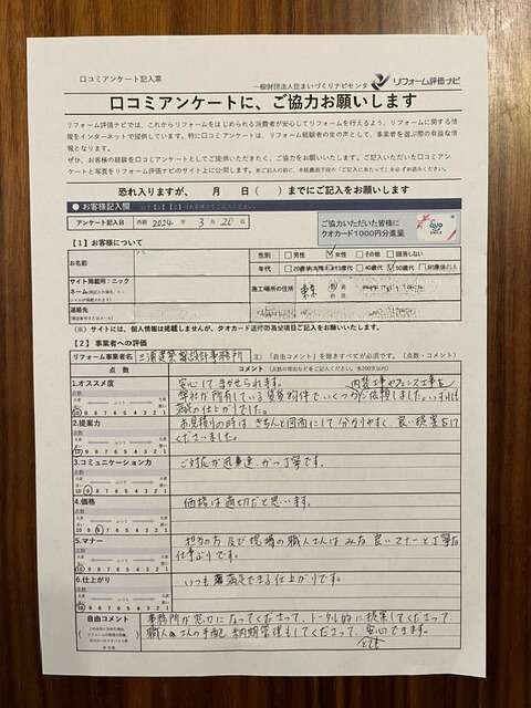 お見積りの時はきちんと図面にしてわかりやすく、良い提案をしてくださいました。 -